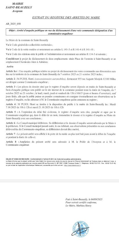 AVIS D ‘OUVERTURE D’ENQUÊTE
